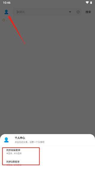 1、點(diǎn)擊左上角進(jìn)入個人中心,在下面就可以看到同步網(wǎng)易歌單和Q音歌單;