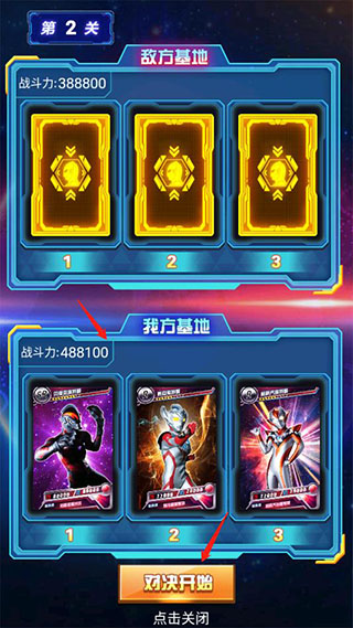 PS:可免觀看視頻領(lǐng)取每日金幣、自動(dòng)切換卡冊內(nèi)戰(zhàn)斗力最高的奧特曼陣容以及勝利雙倍獎(jiǎng)勵(lì)。