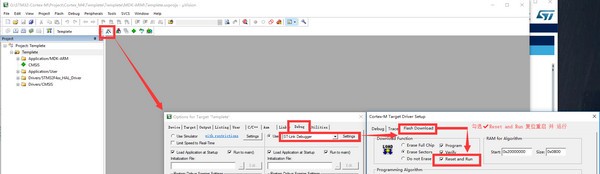 生成完以后,OpenProject 然后進入Option,選擇Debugger分支,下載器選擇ST-LINK,同時修改里面的選項每次下載后自動重啟。保存關(guān)閉工程再打開即可開始你的開發(fā)之路。